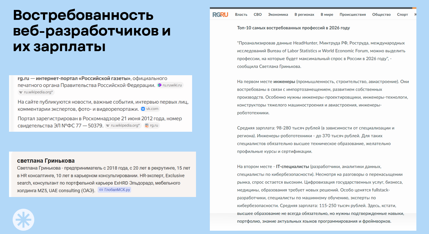 Профессия веб-разработчика актуальна благодаря цифровизации бизнеса, росту электронной коммерции, необходимости в постоянном обновлении и поддержке существующих веб-ресурсов. Это подтверждается данными из официальных источников, которые отражают востребованность специалистов, требования к навыкам и зарплаты, а также перспективы развития профессии.