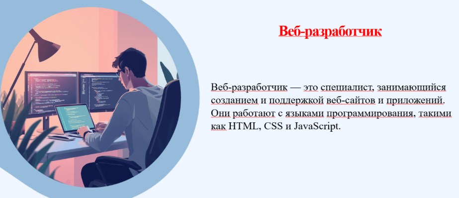 Веб-разработчик — это специалист, который создает и поддерживает веб-сайты и приложения, обеспечивая их функциональность и удобство для пользователей.